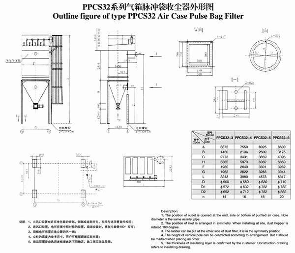 5、收塵器根據(jù)不同規(guī)格,可以是整機發(fā)運,或以解體形式發(fā)運,其基礎設計由選用者負責。