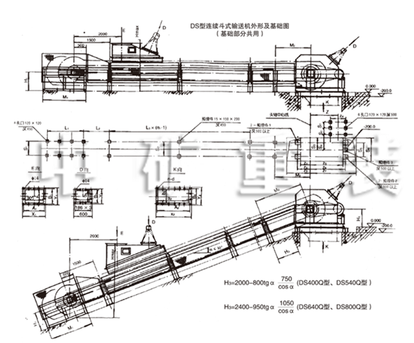 DS型連續(xù)式斗式輸送機外形及基礎圖(SQ型)