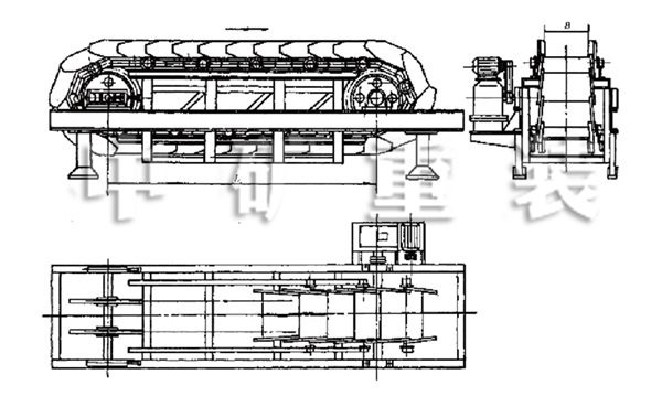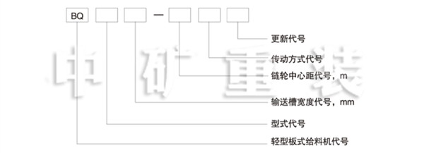 標(biāo)記示例:輸送槽寬度B為1000mm,形式為C型,鏈輪中心距L為9m,右傳動(dòng)方式的通用固定式輕型板式給料機(jī)標(biāo)記為:板式給料機(jī) BQC1000-9 I JB/T3813—1999