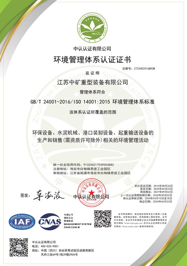 環(huán)境管理體系認證證書